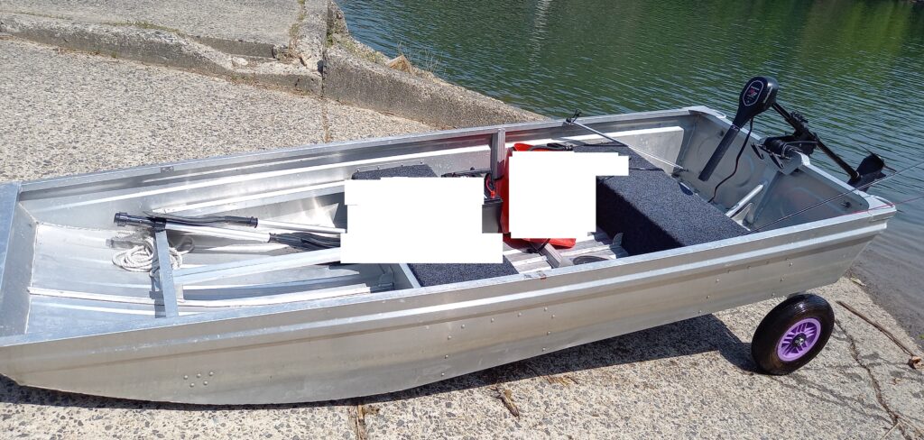 あと、このスタイルにした理由は、フットコンなど満載でボードドーリーを使ってランチングするとき、めちゃくちゃ重かったからです。船首側に30kgの重さがあるので、当然と言えば当然ですが・・・青野ダムのスロープは急で長かったので、きつかったです。